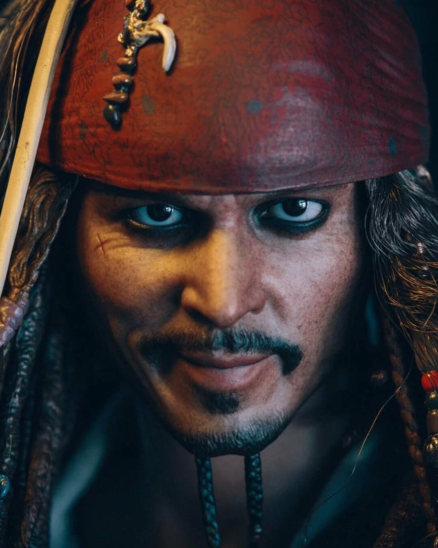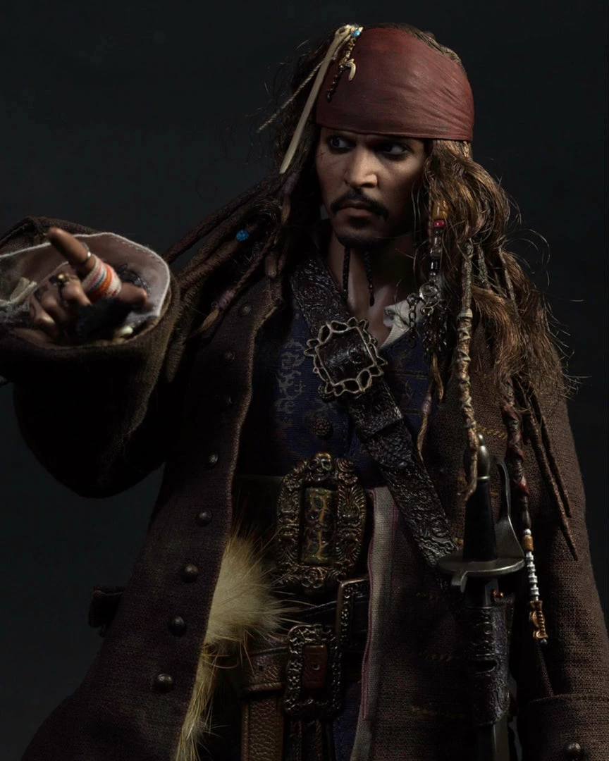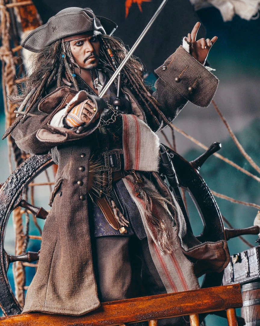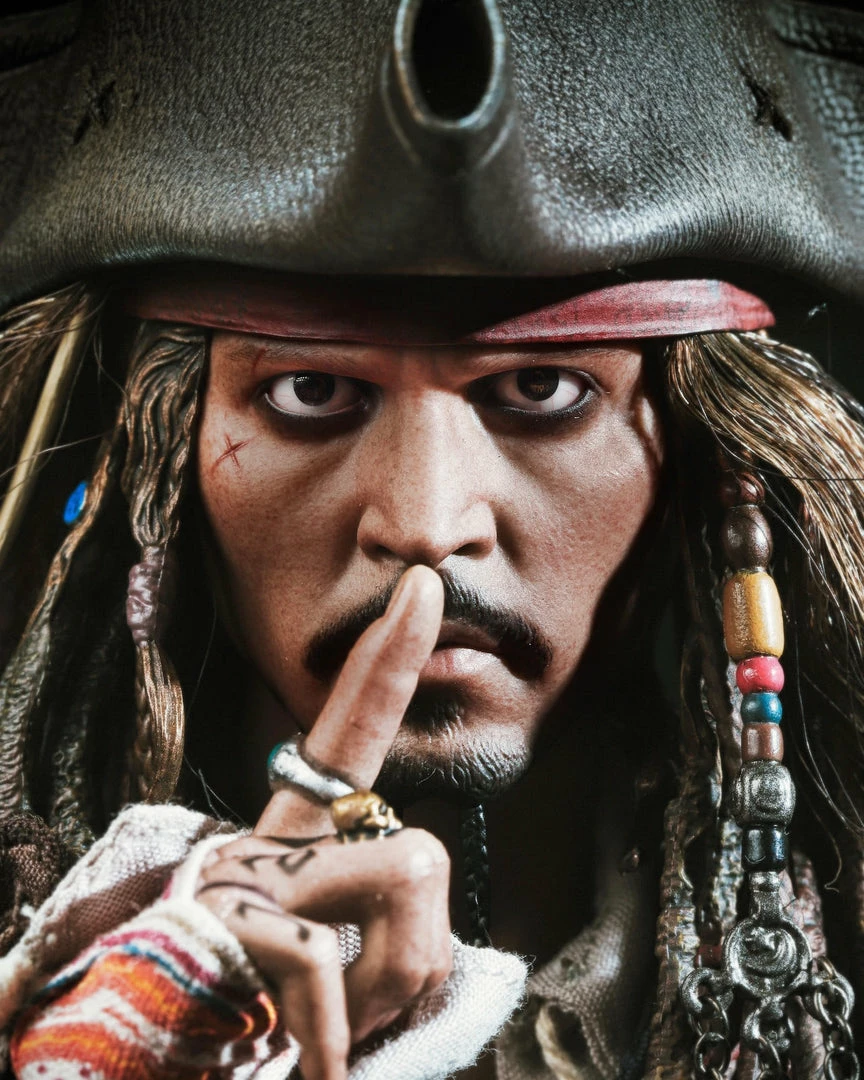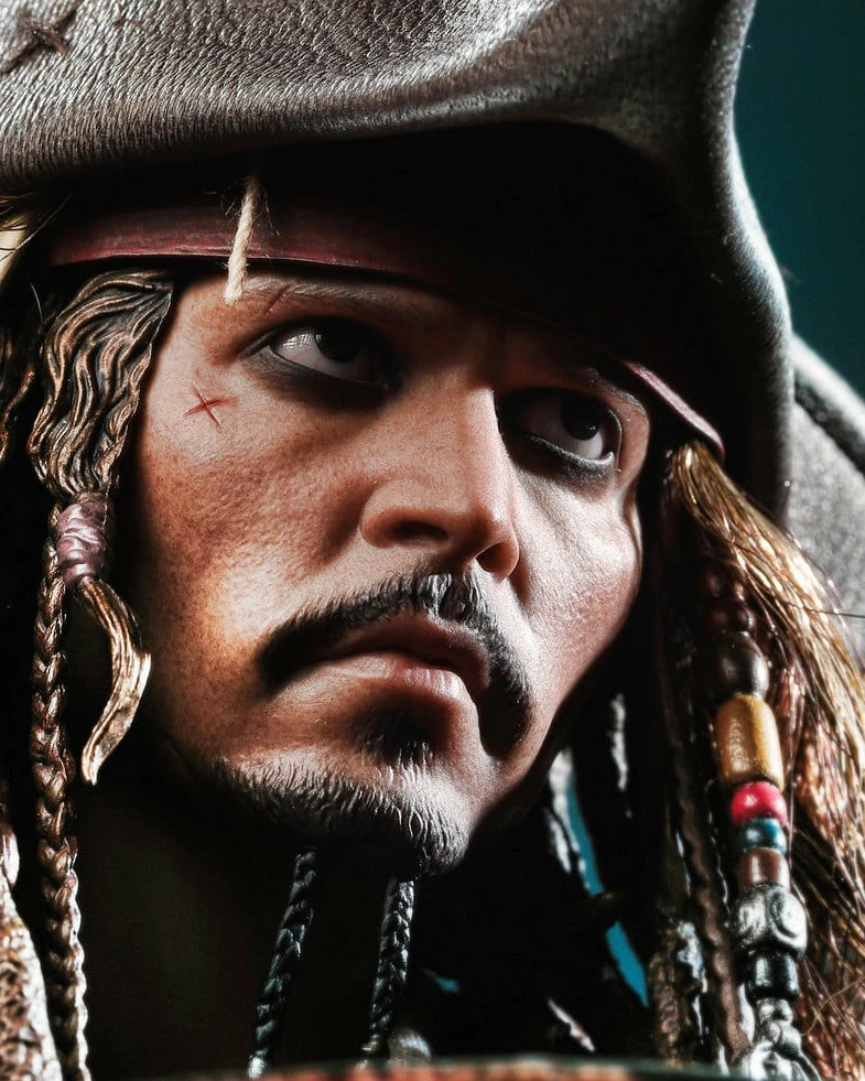 – Authentic and detailed likeness of Johnny Depp as Captain Jack Sparrow in Pirates of the Caribbean: Dead Men Tell No Tales