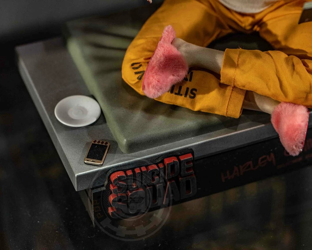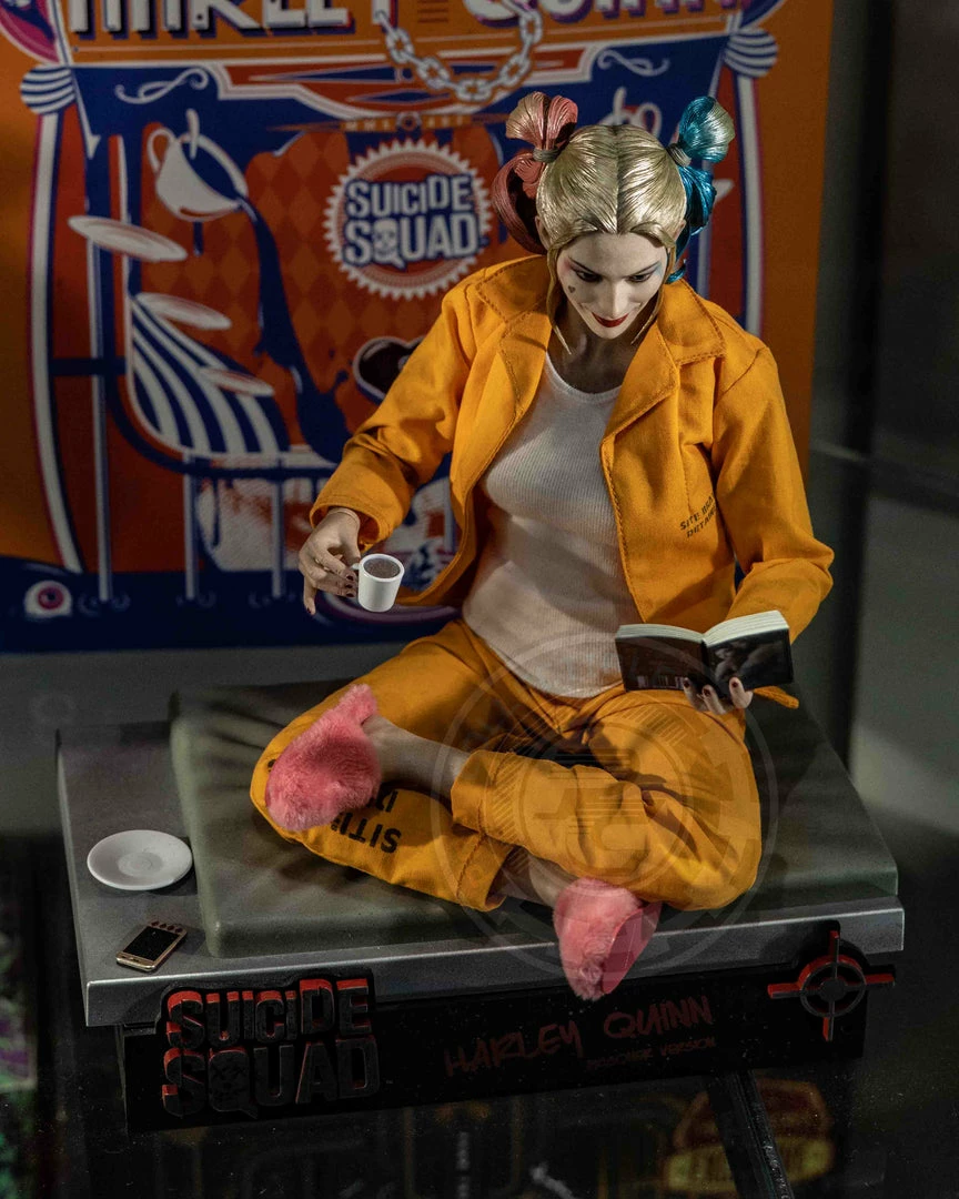 – Specially designed Suicide Squad-themed figure stand with character backdrop and removable prison cell mattress