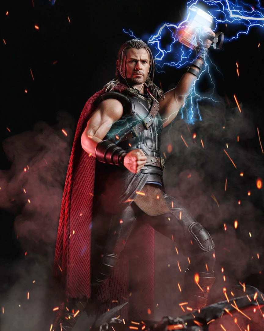 The 1/6th scale Roadworn Thor Collectible Figure specially features:
