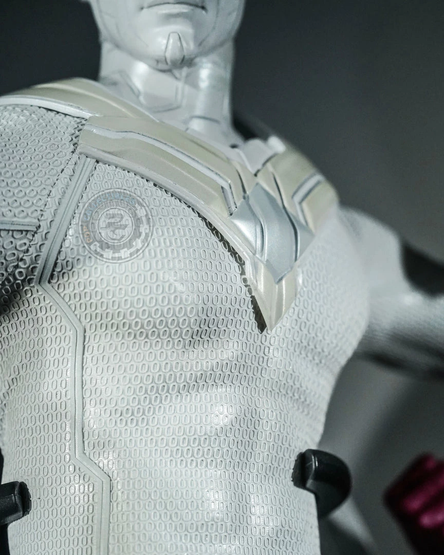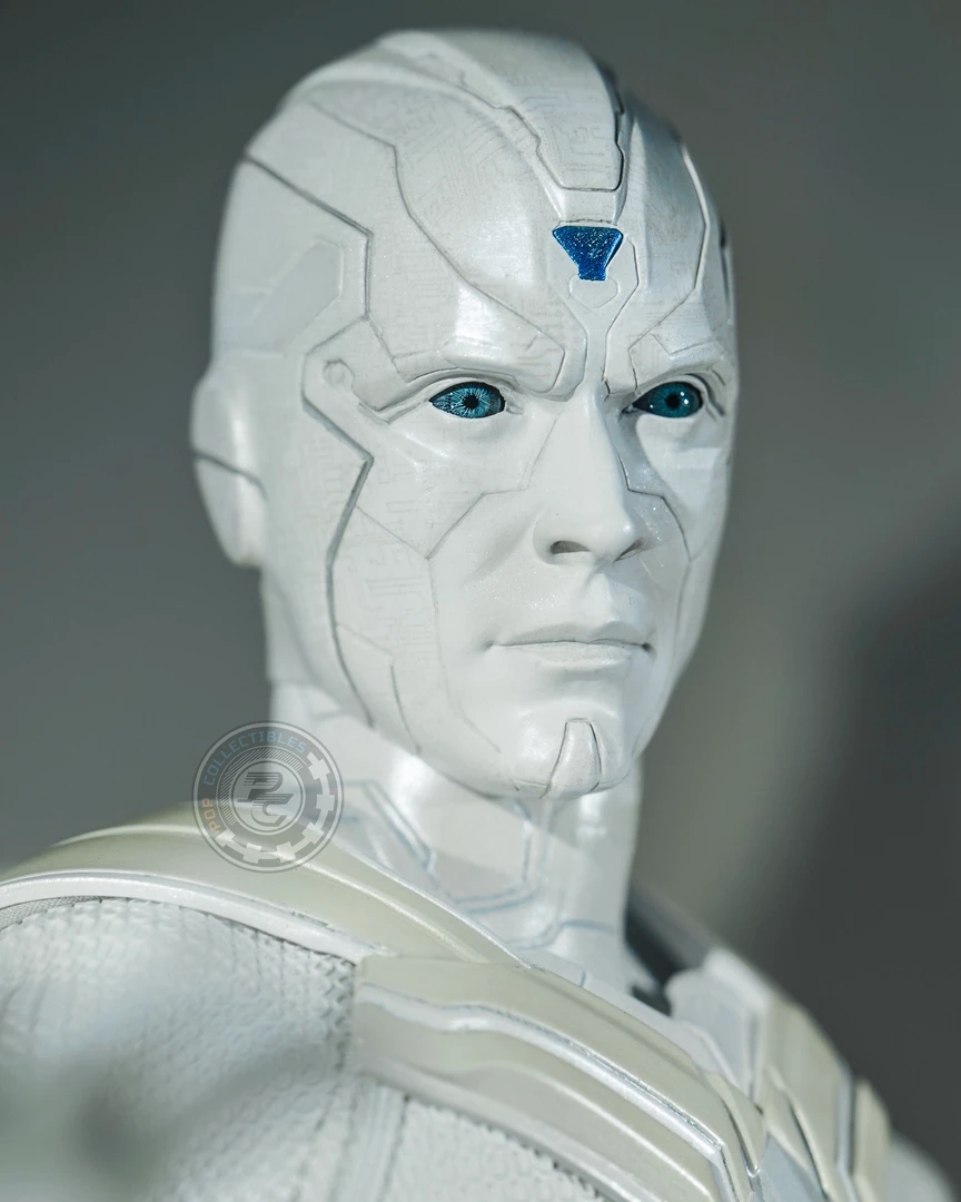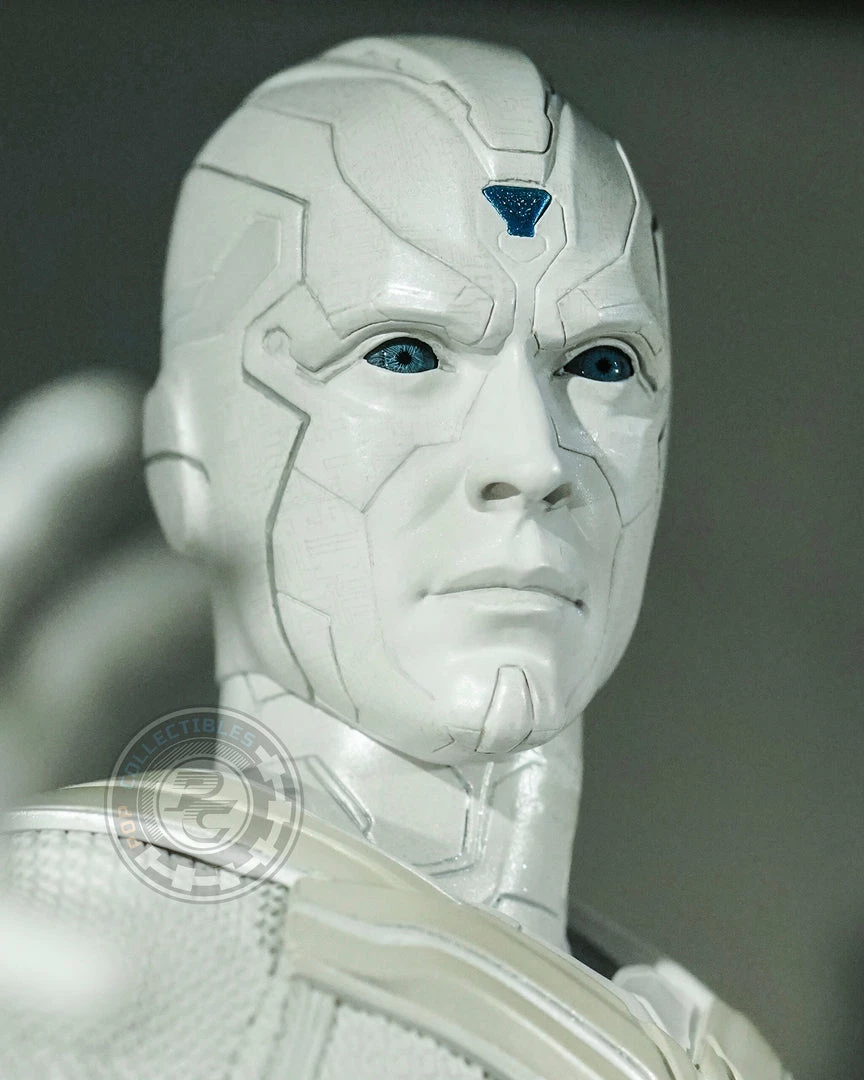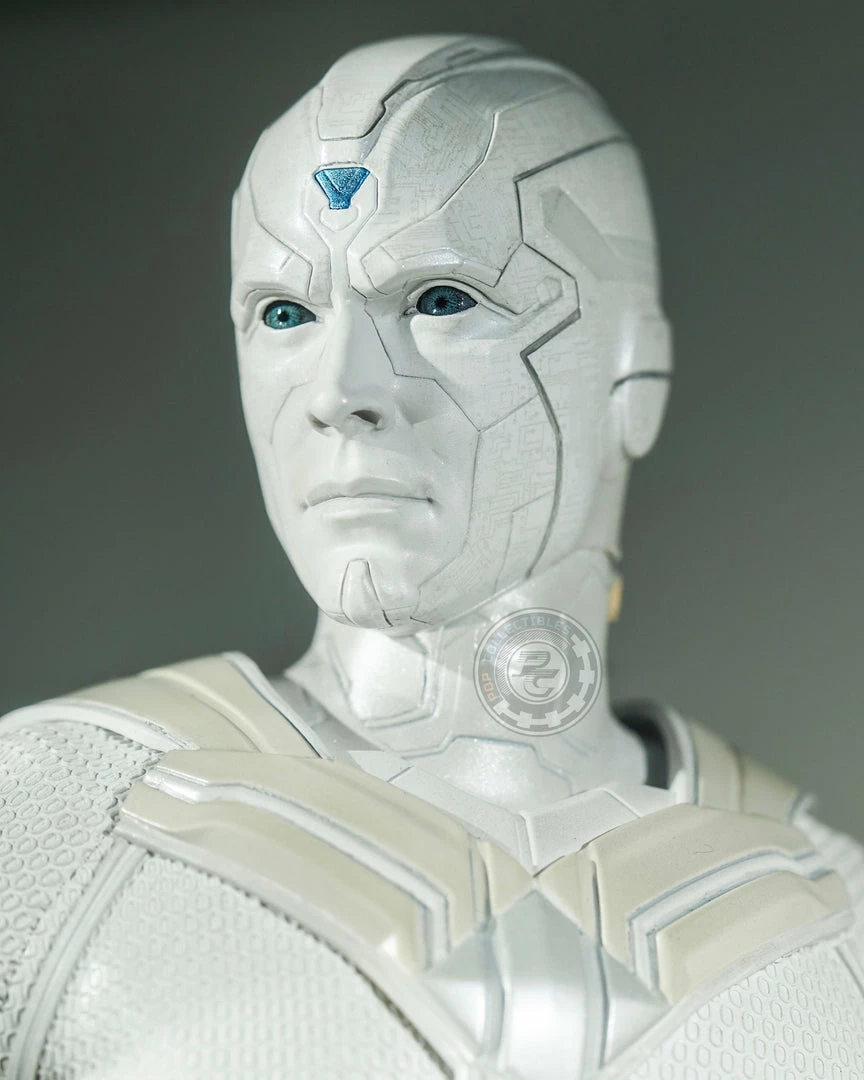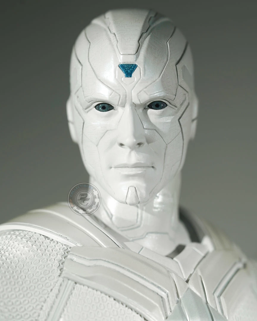 – Specially applied gradient white skin tone and blue mechanic part on forehead to reflect The Vision’s distinctive appearance