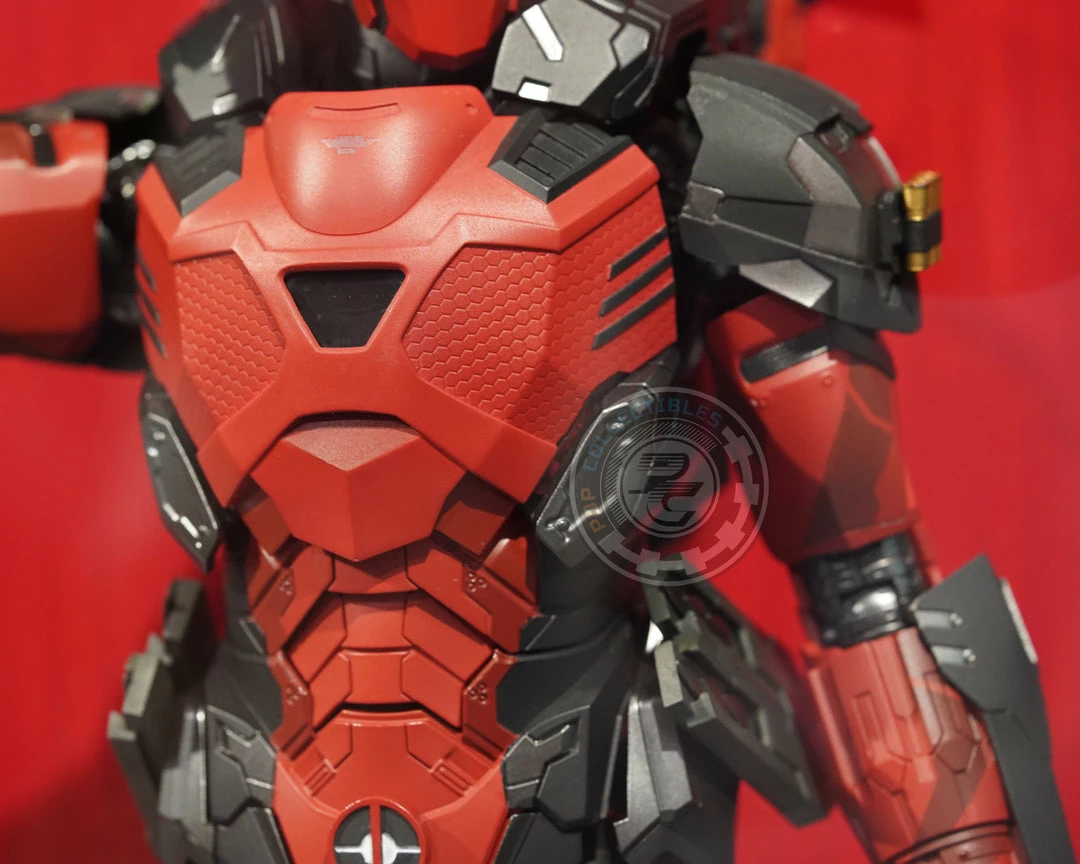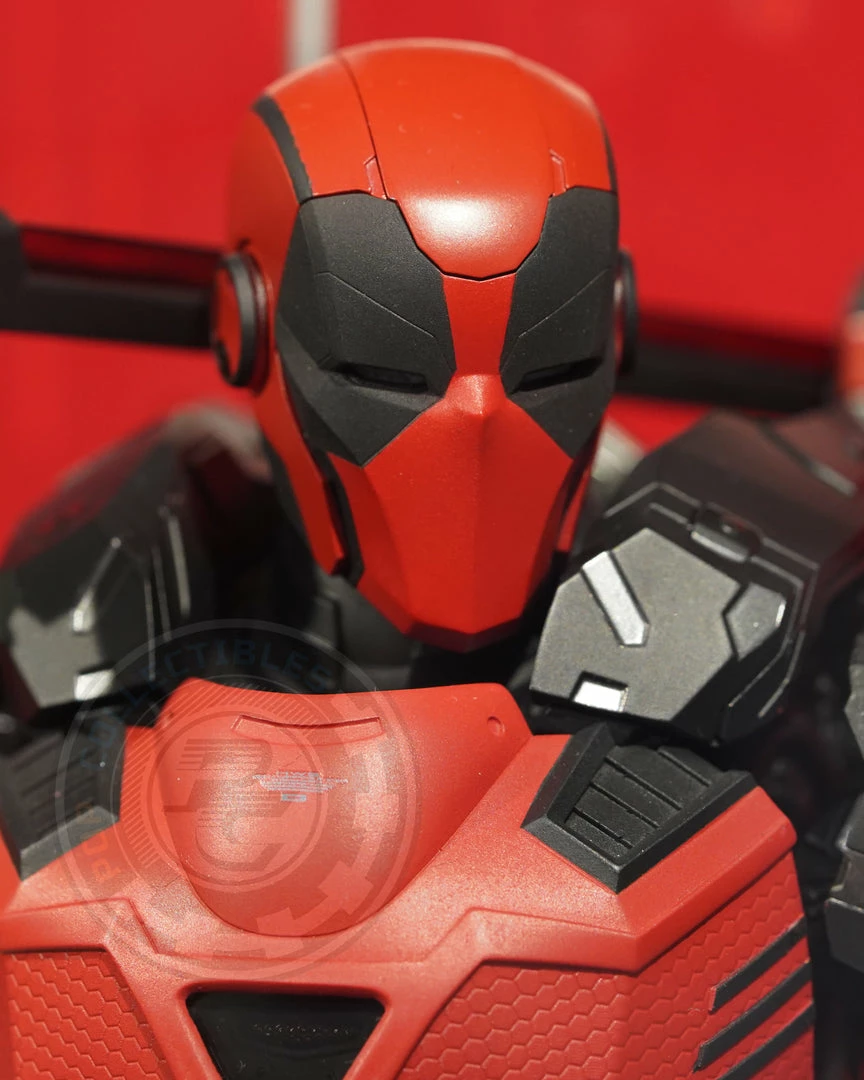 – Iconic red and black colored streamline armor design with matte finish and dark silver colored highlights