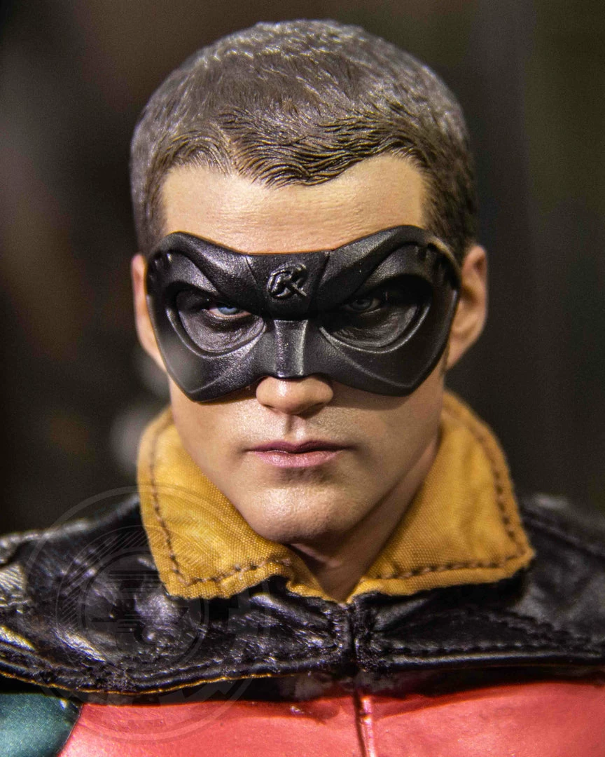 – One (1) metallic red and green suit with gold utility belt and Robin logo