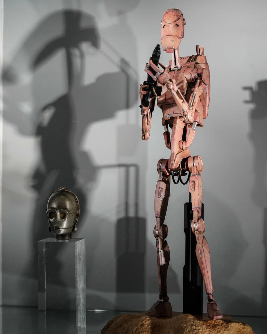 The new 1/6th scale Battle Droid collectible figure is inspired by the droid’s appearance in the Geonosis™ arena battle. It features a newly developed mechanical structure with exceptional articulations, a blaster rifle, a pair of binoculars, a sand themed figure base, an interchangeable C-3PO™ head recreating the comical scenes when the droids were misconfigured, and a specially designed commemorative packaging!