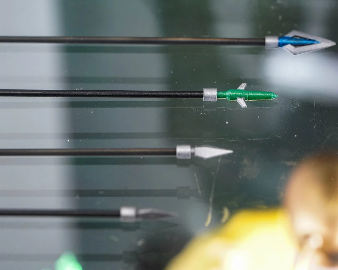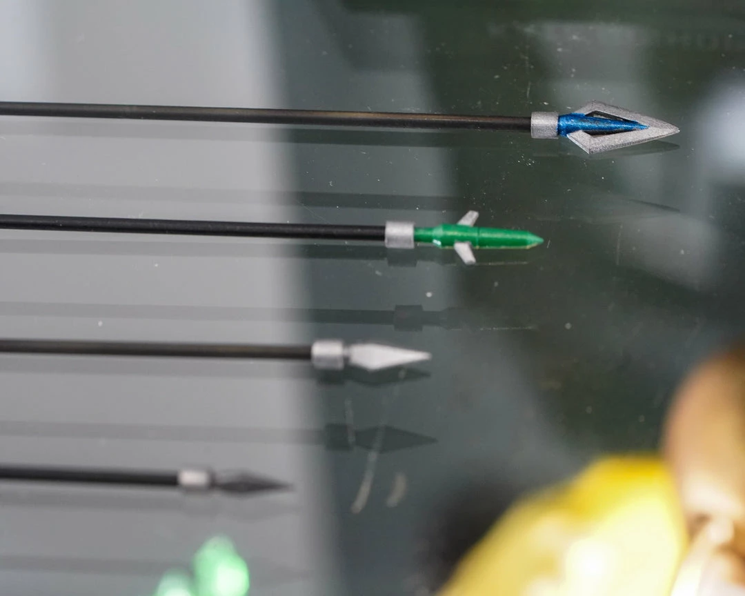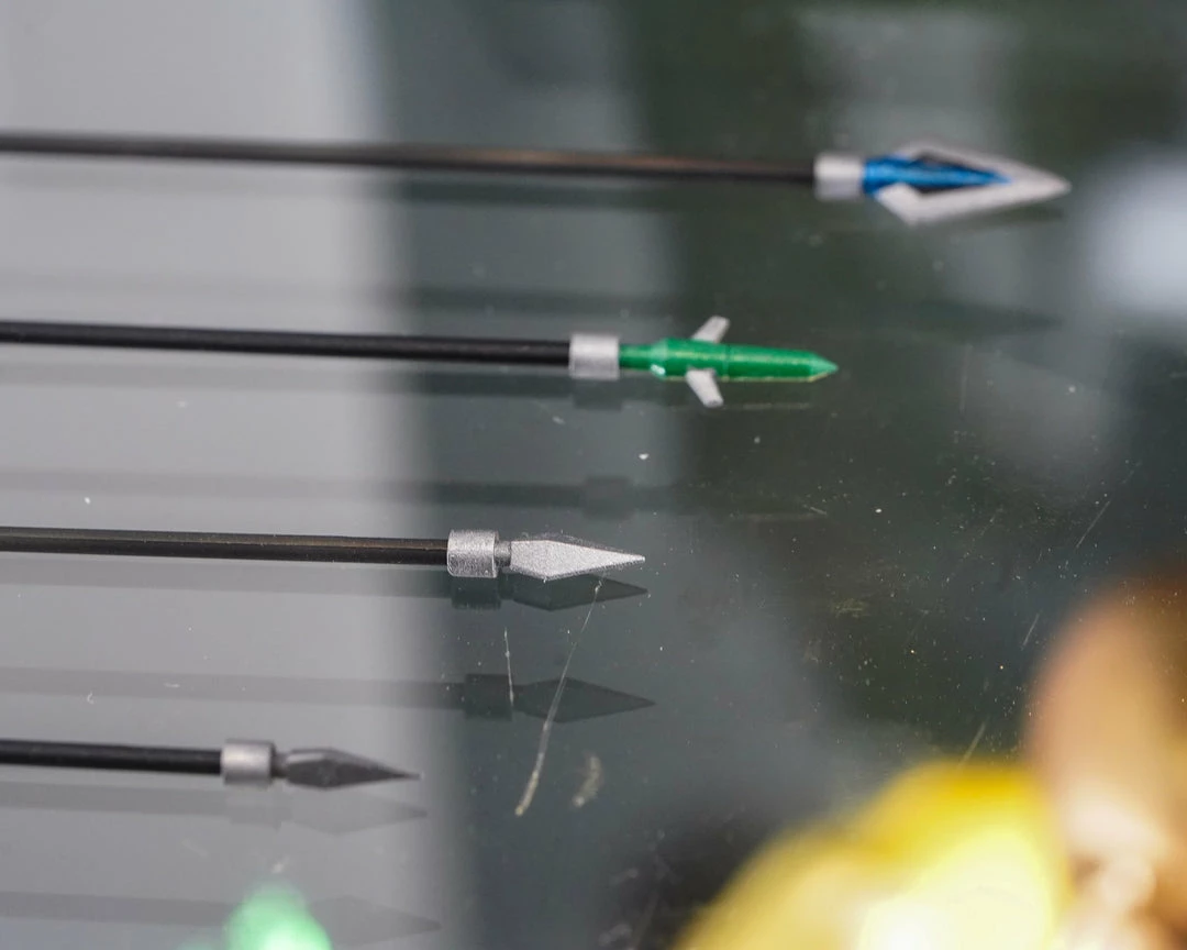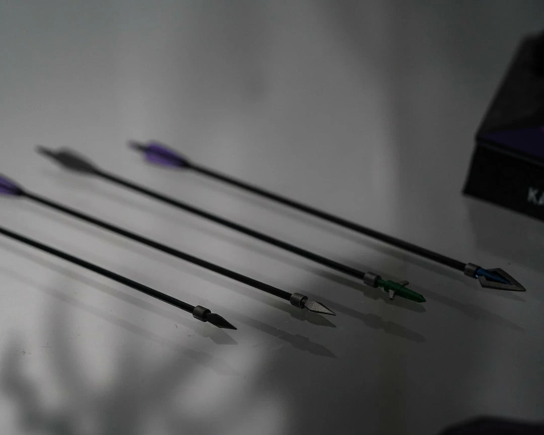– Six (6) individual arrows and six (6) interchangeable trick arrowheads of different styles