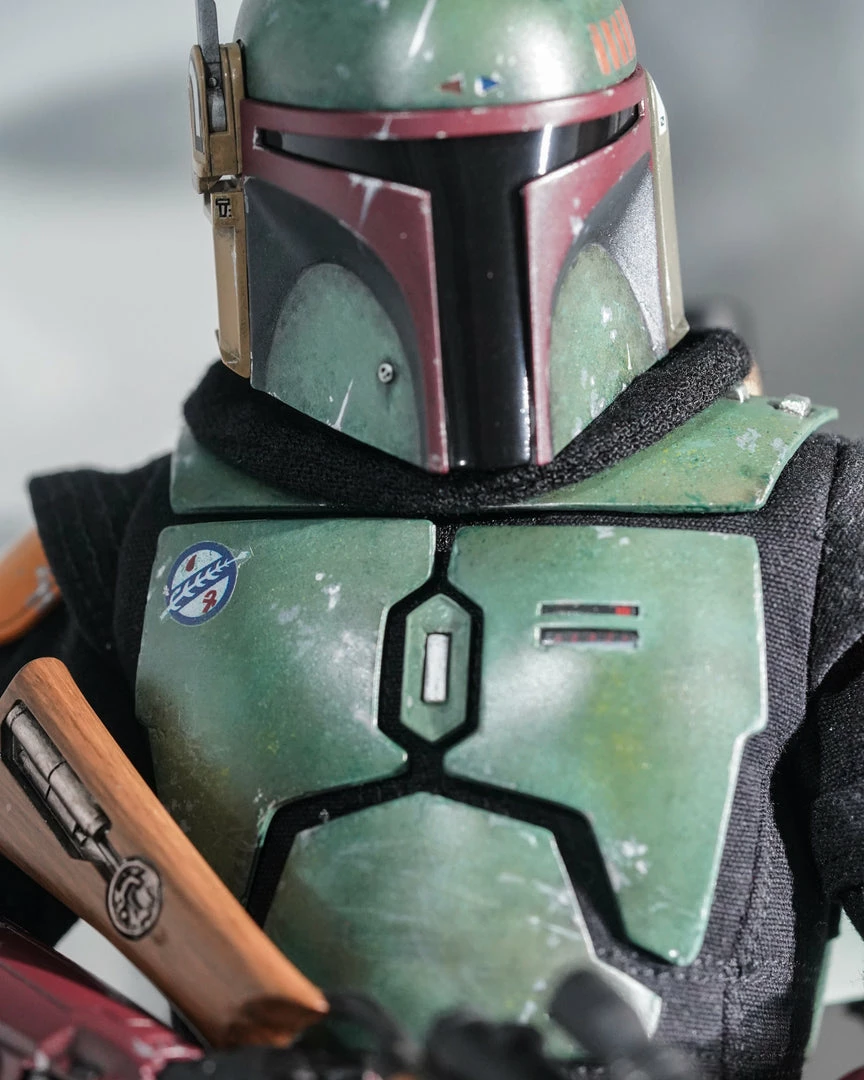 – A newly crafted Boba Fett helmet with articulated rangefinder