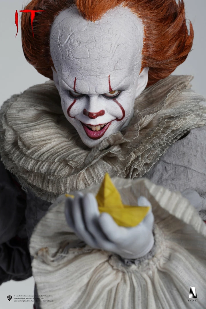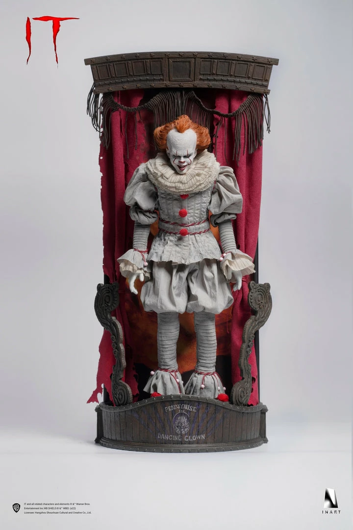 Following the release of INART 1/6 Gandalf the Grey collectible figure, we are excited to introduce a new addition to our 1/6 scale figure collection, Pennywise (IT). This IT collectable showcases the clown on a theatre stage. Crafted to look like he is perched upon a shabby wooden stage with red velvet curtains hanging behind it, Pennywise stares forward menacingly at itโs prey.