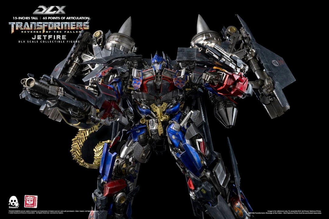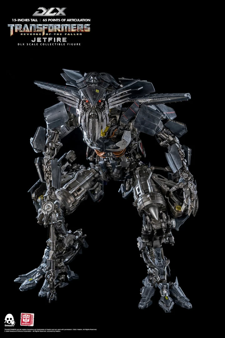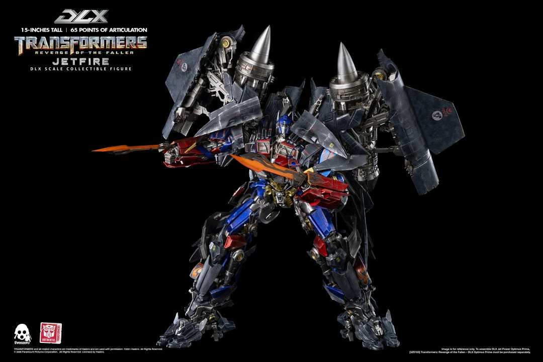 The ancient Decepticon Seeker who chose to side with the Autobots and sacrifice his spark to Optimus Prime to aid in the defeat of The Fallen, Hasbro and threezero proudly present the long-awaited Jetfire from the Transformers: Revenge of the Fallen film as the next figure in the Transformers DLX Collectible Figure Series!